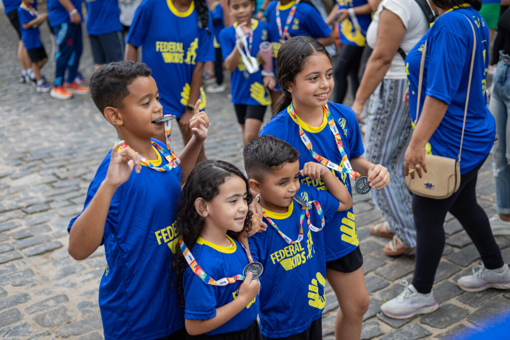 Corrida Federal Kids incentiva o esporte e a união familiar: Um dos momentos mais animados do dia foi a Corrida Federal Kids. Pais, mães, tios e responsáveis toparam o desafio de correr com as crianças pelas ruas do Centro Histórico, celebrando o esporte, a saúde e o espírito de união familiar. Ao final, todos receberam medalhas pela participação e espírito esportivo, em uma celebração que ficará marcada na memória das crianças e famílias de Vassouras.